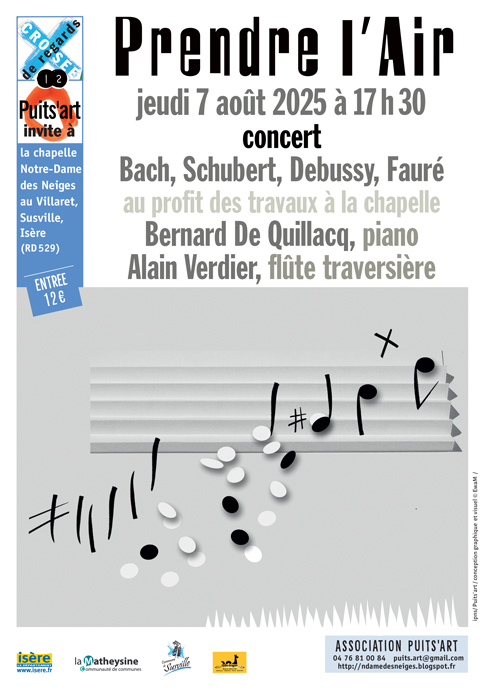 Laissez vous emporter au son des grandes mélodies de Bach, Schubert, Debussy ou encore Fauré pour un concert au profit des travaux de la chapelle Notre-Dame des Neiges. Une envolée musicale avec Bernard de Quillacq au piano et Alain Verdier à la flûte traversière, jeudi 7 août 2025, à 17h30. Participation 12€