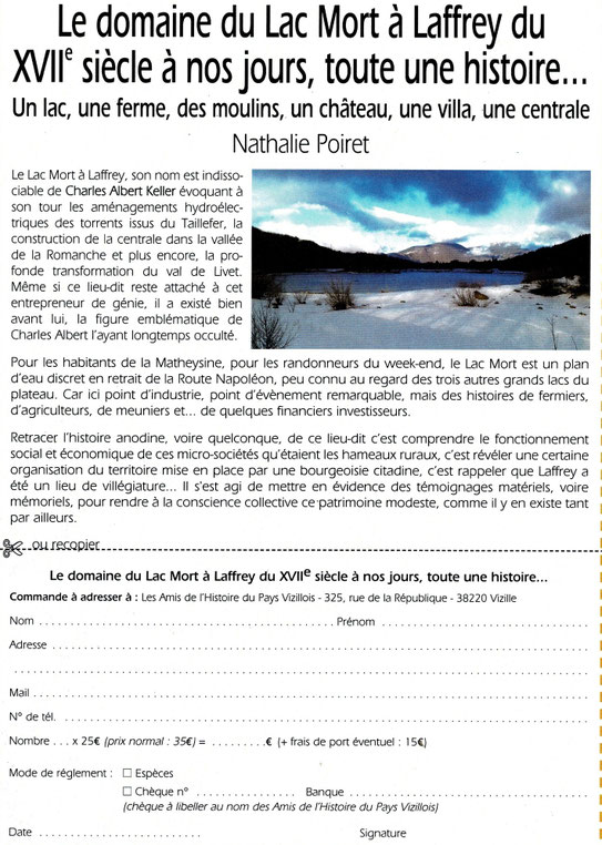 "Le domaine du Lac Mort du XVIIe siècle à nos jours, toute une histoire... Un lac, une ferme, des moulins, un château, une villa, une centrale" : une nouvelle publication en souscription (jusqu'à sa parution dans le courant du printemps 2026), par Nathalie Poiret.